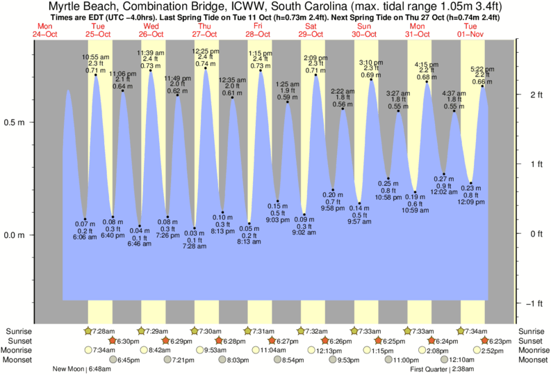 The tide timetable below is calculated from myrtle beach, south carolina but is also suitable for estimating tide times in the following locations: